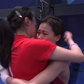 #全红婵第一轮满分##全红婵金牌# 中国的跳台双姝贡献了一场高质量的决赛,恭喜全红婵卫冕成功,恭喜陈芋汐克服伤病摘得银牌。