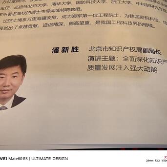 强国知识产权论坛,国家知识产权局支持的活动,大都是知识产权的专家,我旁边的名牌是宋柳平,华为首席法务官、知识产权官,这个圈子里神一般人。
